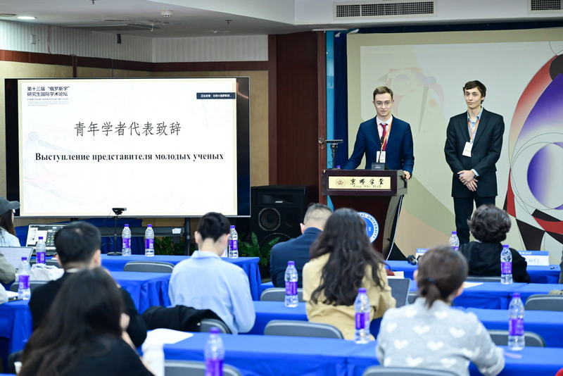 俄罗斯研究中心副主任、《俄罗斯文艺》副主编张晓东老师进行总结发言。张晓东老师对参会同学的表现进行了高度评价,并鼓励大家继续努力,深耕不辍。来自俄罗斯莫斯科国立大学的博士生阿列克谢·布基尼奇和尼古拉·巴拉诺夫代表青年学者致辞。两位俄罗斯学者认为此次会议不仅为青年学者们展示其科研成果提供了机会,还为中外青年学者之间进行国际跨学科对话搭建了重要的平台,并表示期待同专家与青年学者们就“俄罗斯学”开展更多学术交流与合作。