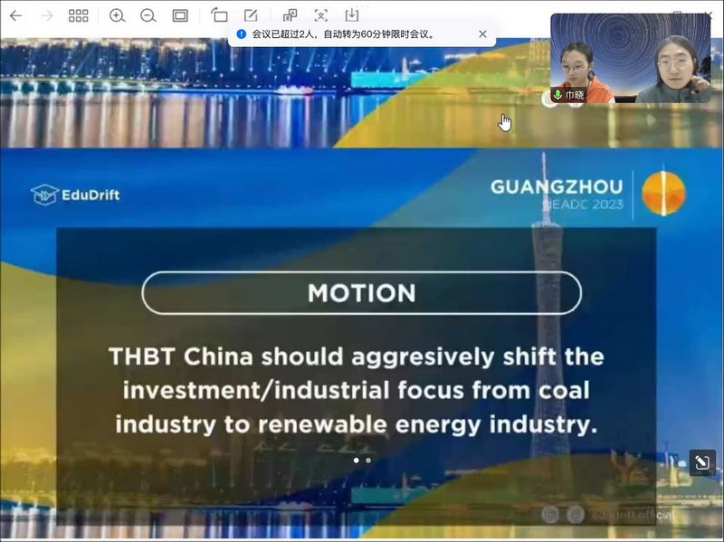大赛分为校选赛和全国总决赛两个阶段。今年六月份,赖炫颖、杨乐帆顺利通过校选赛,代表情色直播 参加全国总决赛。两位同学积极备赛,坚持日常训练,不断丰富自己的知识储备和语言表达能力,新乐群、后主楼906B、1013都常见他们的身影。全国总决赛开始前半个月,两位同学在指导老师和外文学院英文辩论队的帮助下,坚持每晚的赛前集训。