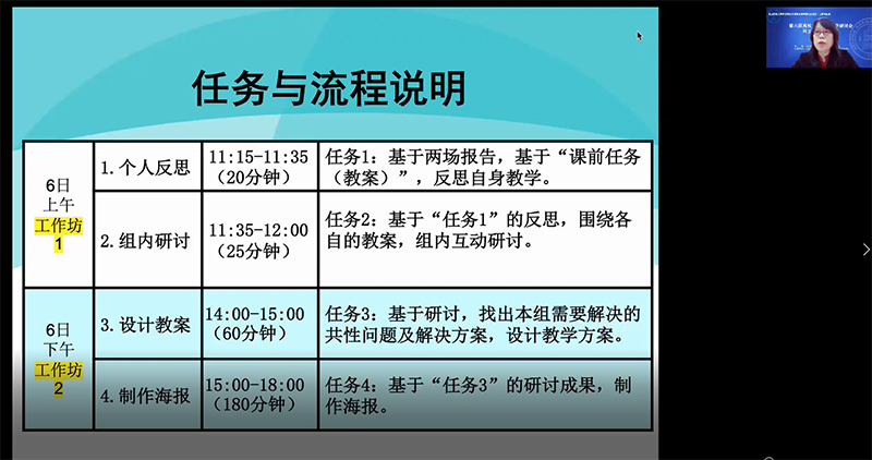 在简短的云端合影后,研讨会进入主旨讲演和示范说课环节。