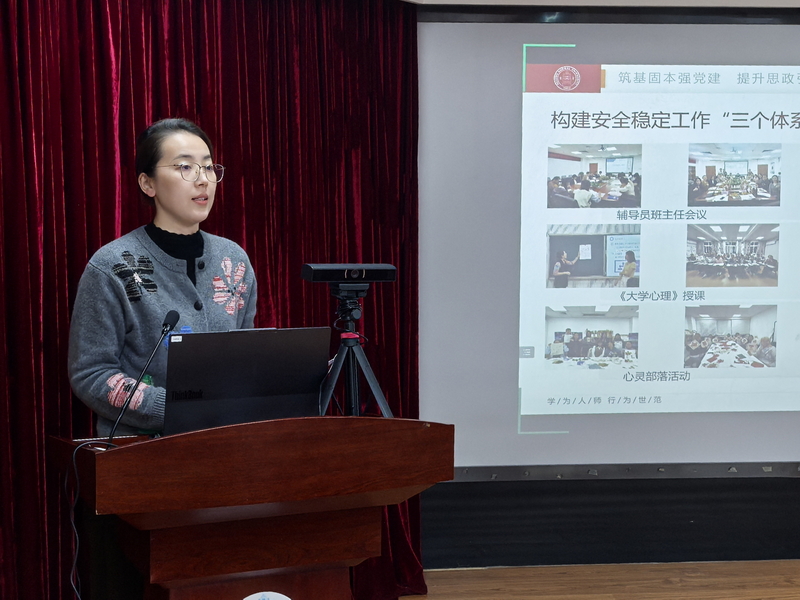 艾忻做保密工作培训。她强调全体教职工应切实承担保密安全责任,严格遵守学校对于学术科研、新闻宣传、涉外活动等方面的保密管理要求,并对即将到来的入校检查工作进行了部署。