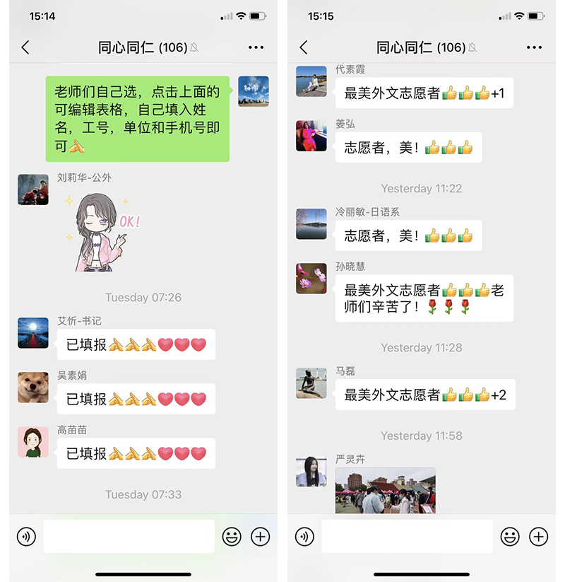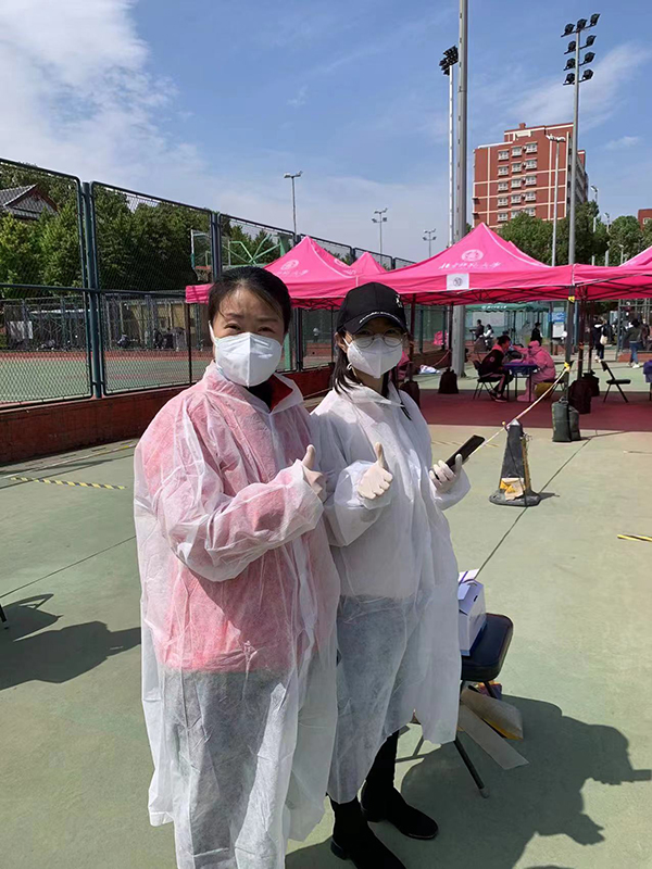 外文学院工会主席王德亮老师在全院的微信群中发布招募志愿者协助核酸检测的通知后,情色直播 教职工积极响应,党委书记艾忻老师带头报名,在非常短的时间内就顺利完成了报名工作。外文志愿者们调整自己的工作时间安排,在保障自身健康安全的前提下,踊跃参与到核酸检测任务中。他们提前到核酸检测地报道并接受培训,穿戴好防护装备后按时到岗,引导师生排好队伍,保持间距,扫描二维码等等,全面做好后勤辅助工作,确保我校师生能够有序进行核酸检测。